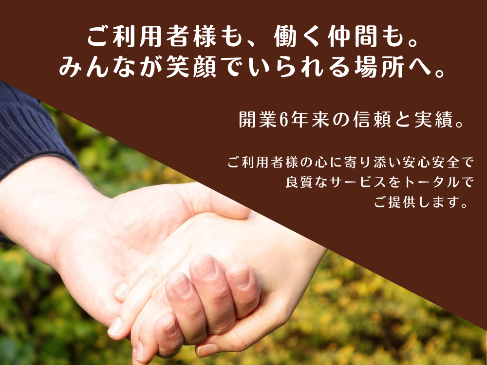 働く職員の幸せや経済的な豊かさを実現するために、充実した研修やサポートを行いながら、皆で楽しく働ける環境を整えていきます。
